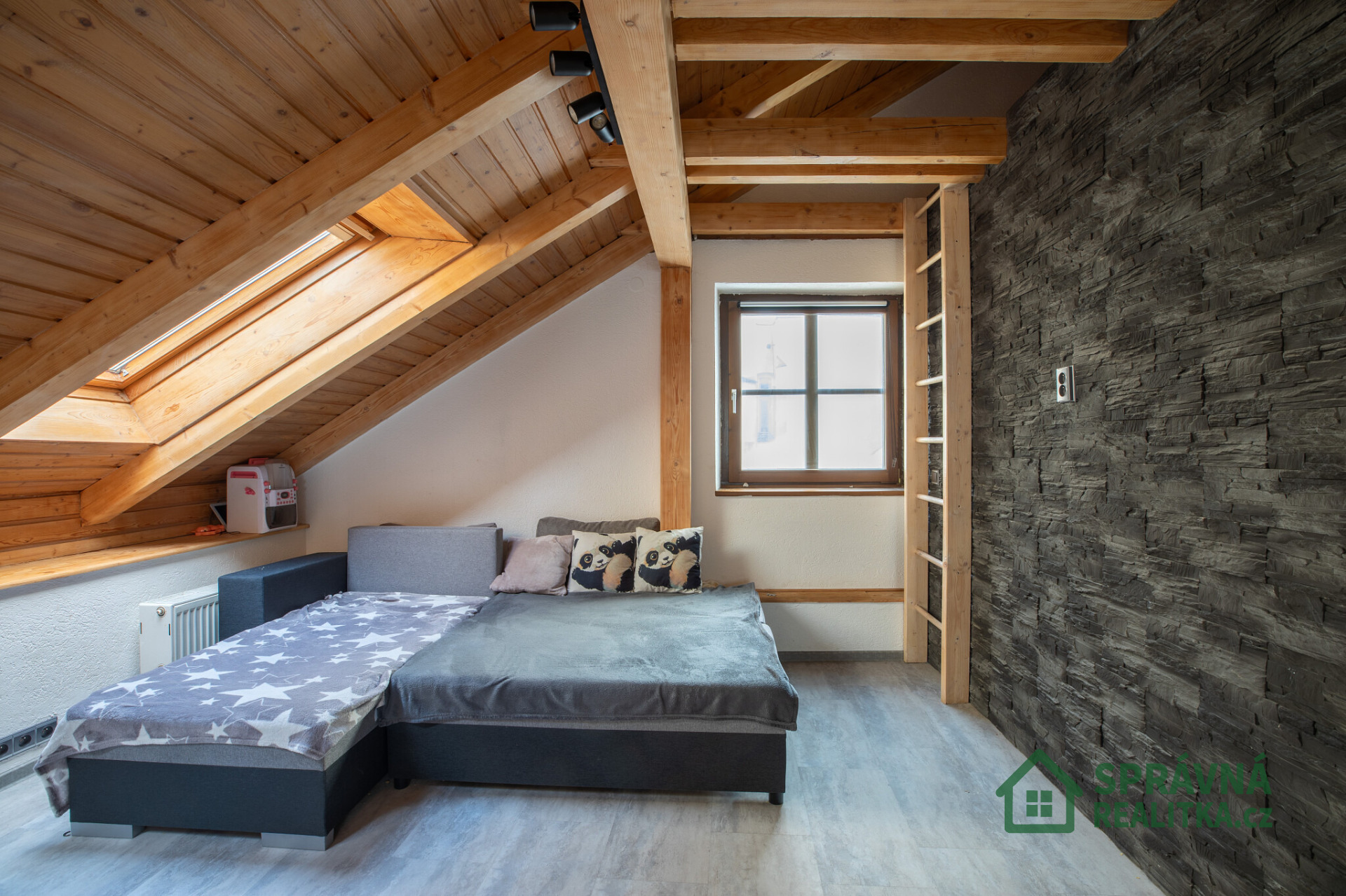 - 104 m² promyšleného prostoru rozděleného do dvou plnohodnotných bytových jednotek + 9 m2 podkrovní vestavby