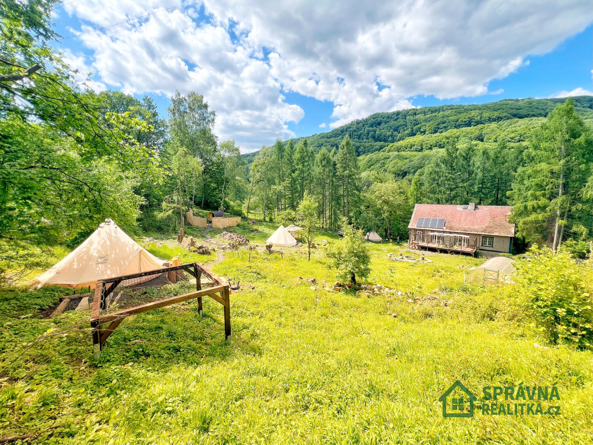 Součástí prodeje je také rozběhnutý glampingový projekt, který se nachází na pozemku v okolí chalupy a zahrnuje: