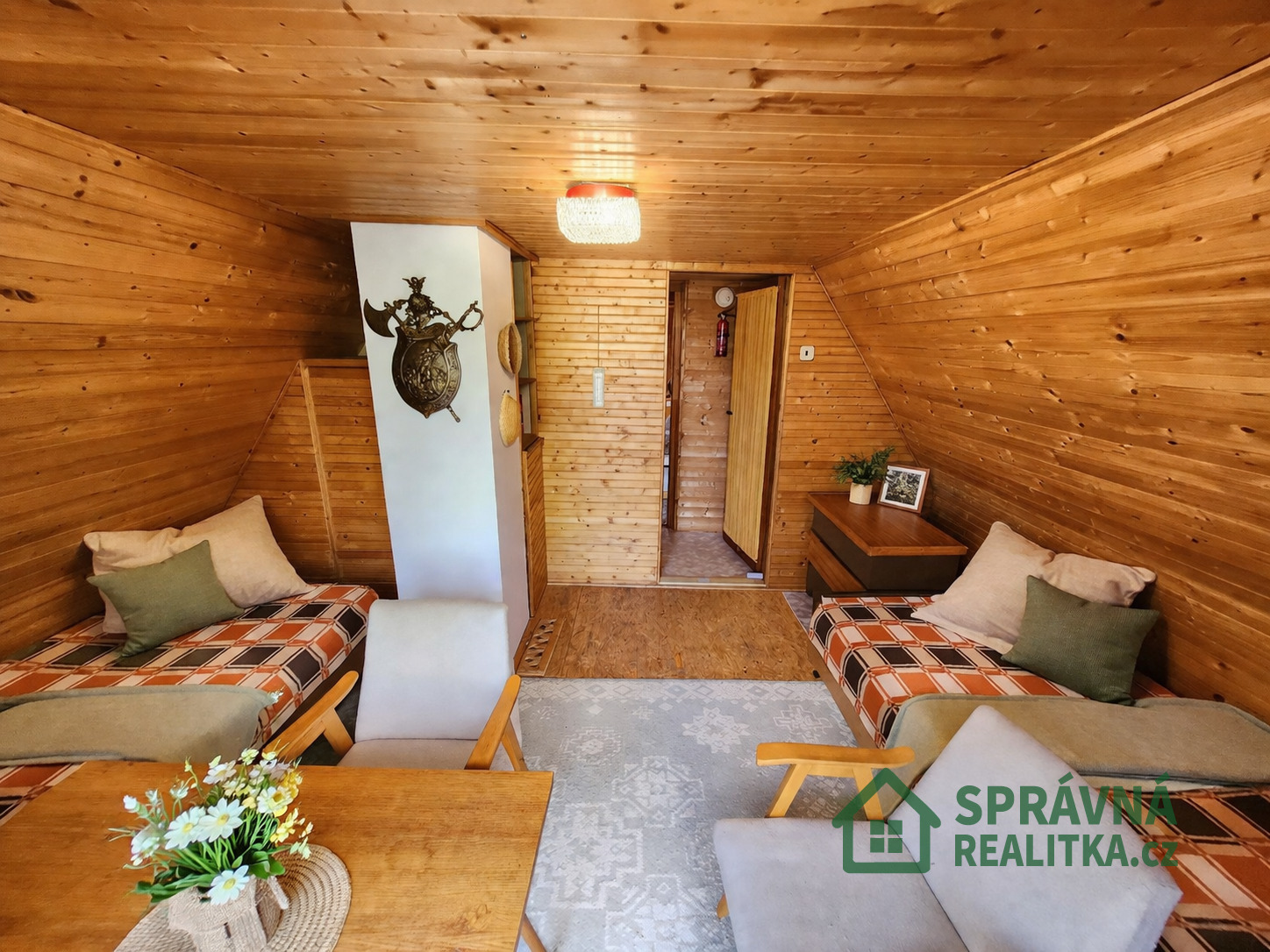 Dispozice domu je velmi příjemná a praktická. V horním patře se nachází tři samostatné pokoje. Ve spodní části domu je velká společenská místnost, krásná veranda s výhledem do přírody, kuchyně, obývací pokoj s krbovými kamny, dále samostatné WC a koupelna. Celkově chata nabízí dostatek prostoru pro rodinné pobyty i příjemná setkání s přáteli.
