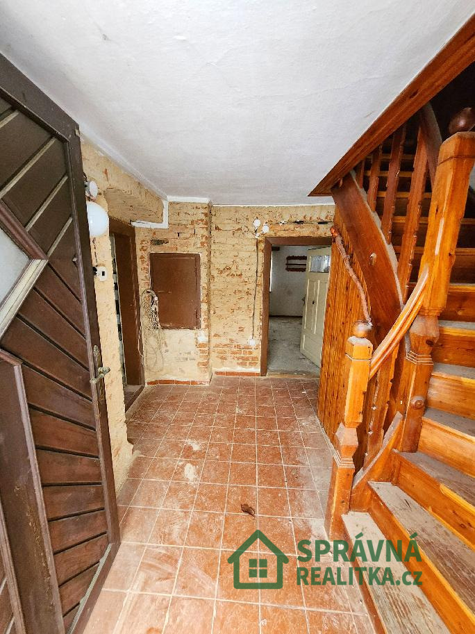 V přízemí domu se nachází obytná část s útulným obývacím pokojem, jehož dominantou je krásný krb, který vytváří příjemnou atmosféru. Další místnost v přízemí je připravena ke kompletní rekonstrukci a nabízí ideální prostor například pro ložnici nebo pracovnu. Dále je zde menší kuchyňský kout, koupelna se sprchovým koutem a WC a také praktický sklípek.