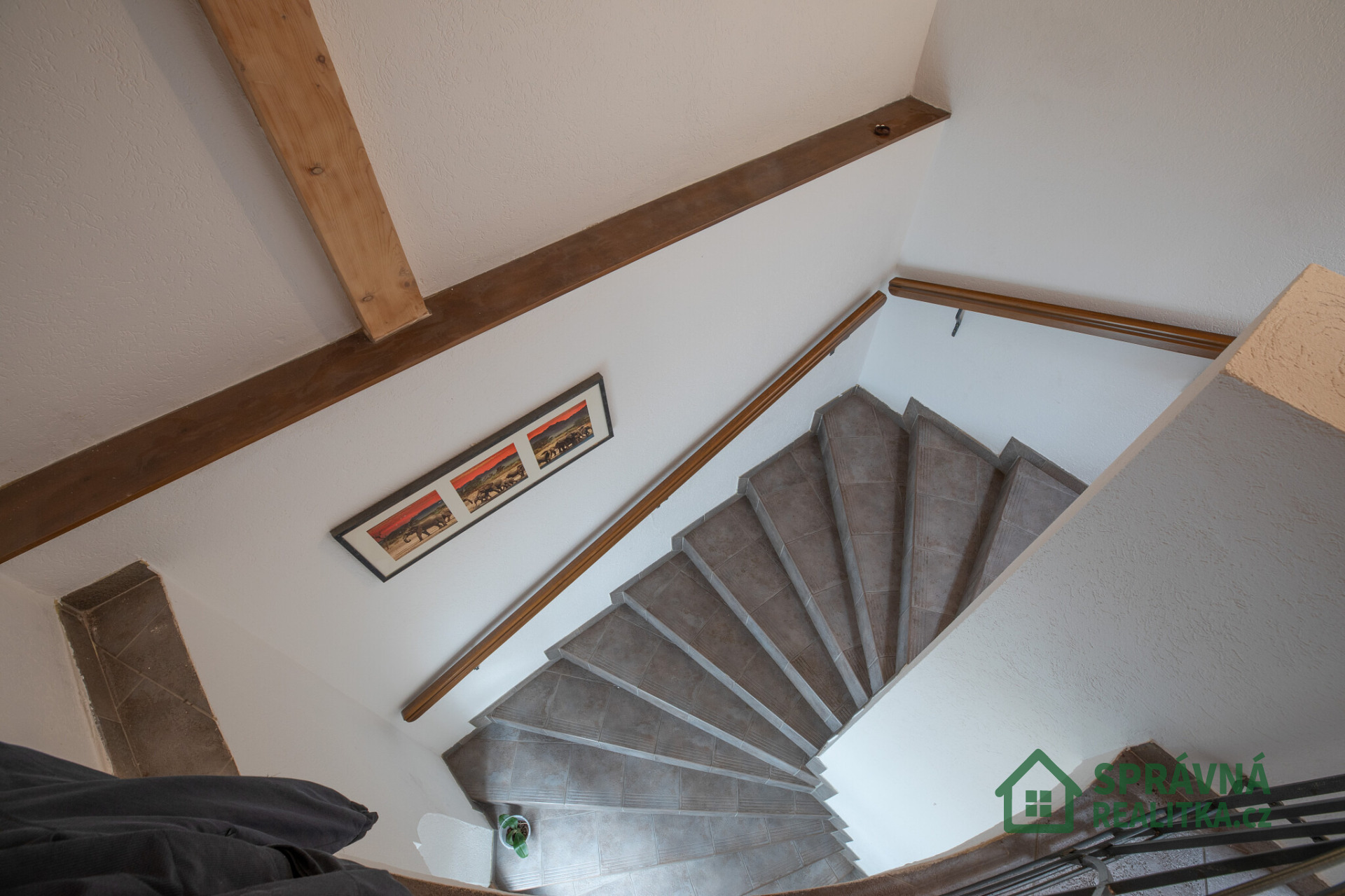 Byt je rozdělen do dvou plnohodnotných podlaží propojených širokým točitým schodištěm. Každá úroveň funguje jako samostatná bytová jednotka s vlastní koupelnou i kuchyní, což výrazně rozšiřuje možnosti využití prostoru.