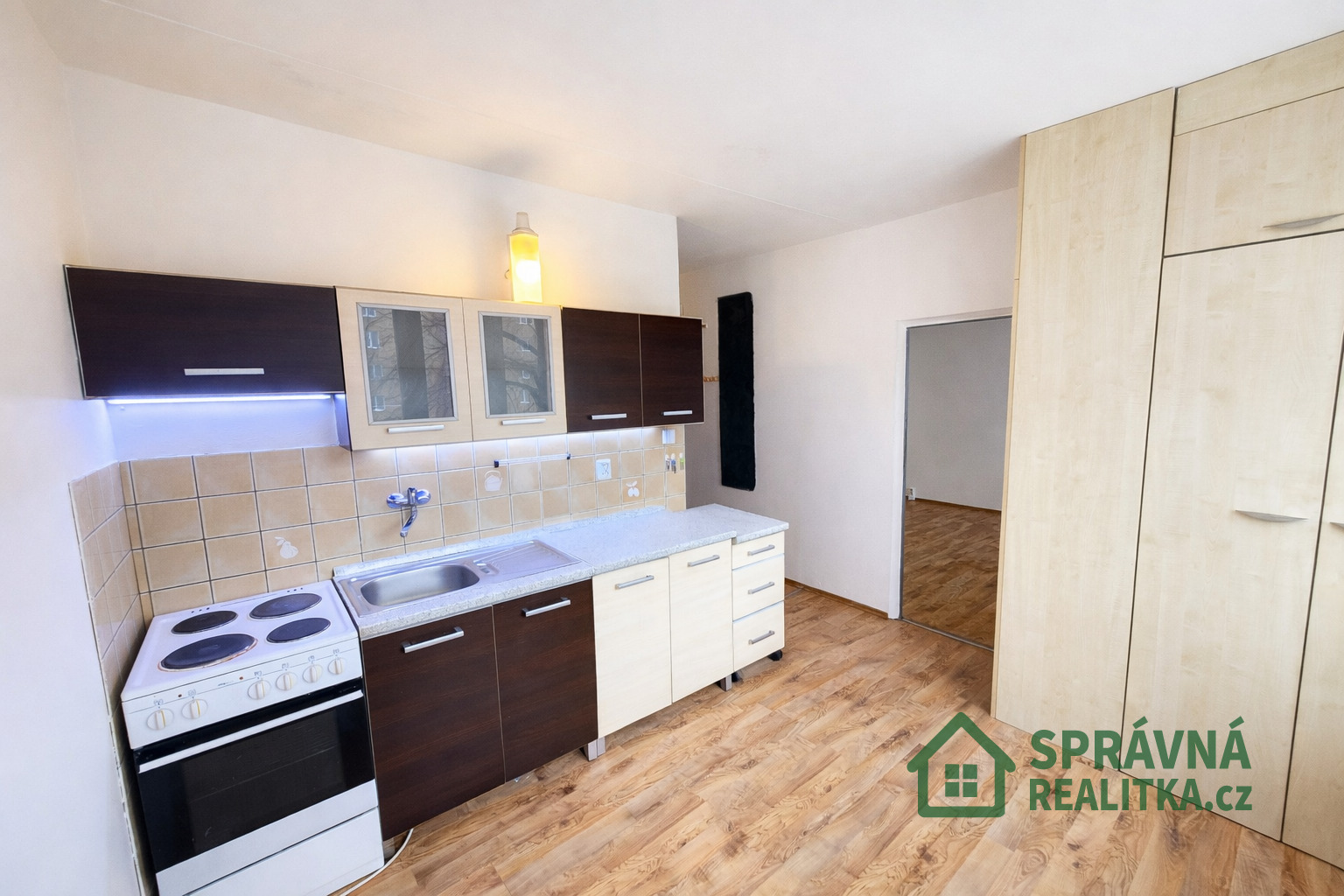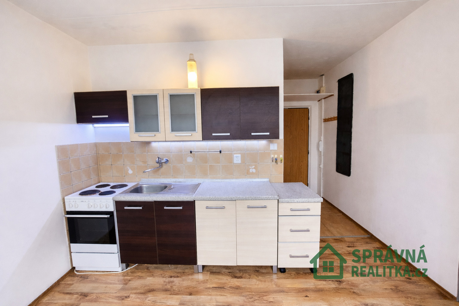 Byt tvoří samostatná kuchyně, prostorný pokoj, předsíň a koupelna se sprchovým koutem, WC a místem pro pračku. K bytu náleží také sklepní kóje o výměře cca 2 m².
