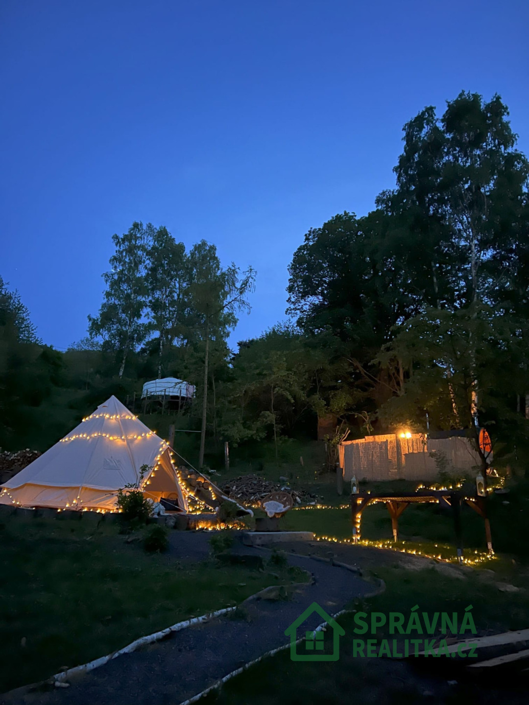 Součástí prodeje je také rozběhnutý glampingový projekt, který se nachází na pozemku v okolí chalupy a zahrnuje: