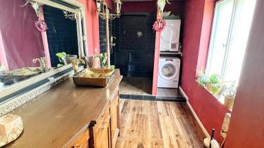 - Koupelna: prostorný sprchový kout, WC s bidetem, umyvadlo s designovou skříní a zrcadlem